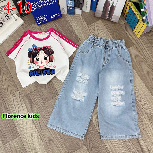 A487833 - Set jean siêu xinh cho bé áo chất thun cotton 4c in cô bé AILISEN quần jean cotton mềm wa