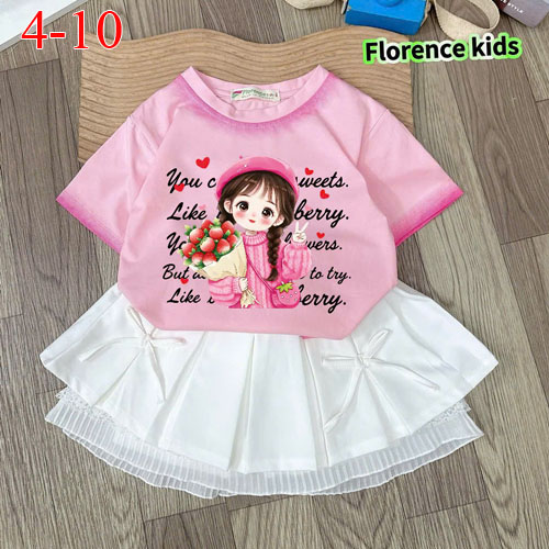 A487972 - Set váy xếp ly ren cực xinh cho bé áo thun cotton in cô bé chân váy xếp ly kaki_Size 4-10