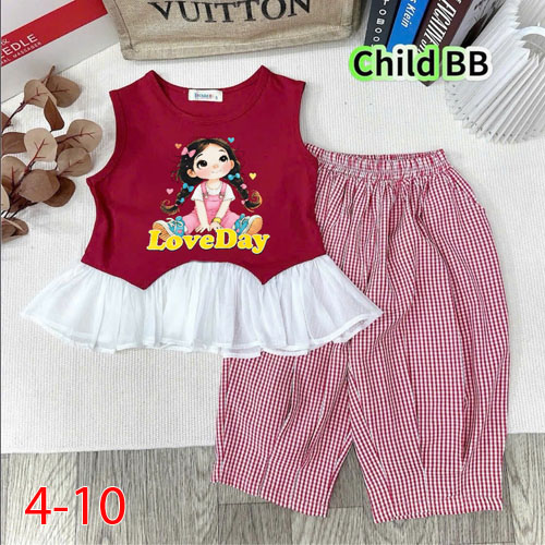 A488004 - Set bé gái áo thun cotton in cô bé Love Day phối lai voan quần kate caro_Size 4-10