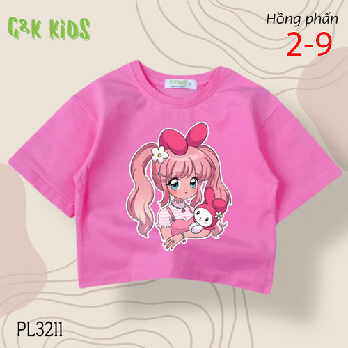 A488038 - Áo bé gái phom lững thun cotton 4c in cô bé ôm kuromi_Size 2-9