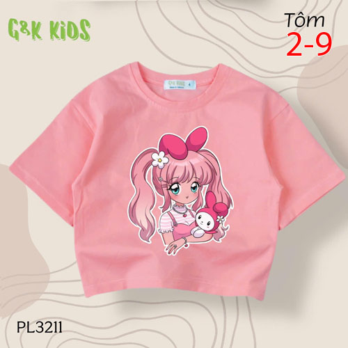 A488039 - Áo bé gái phom lững thun cotton 4c in cô bé ôm kuromi_Size 2-9