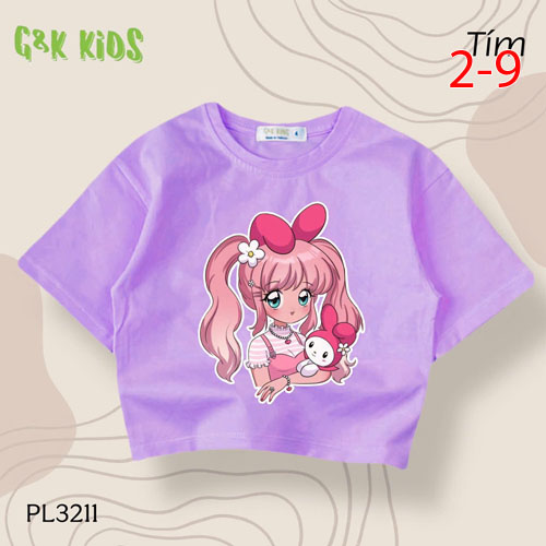 A488042 - Áo bé gái phom lững thun cotton 4c in cô bé ôm kuromi_Size 2-9