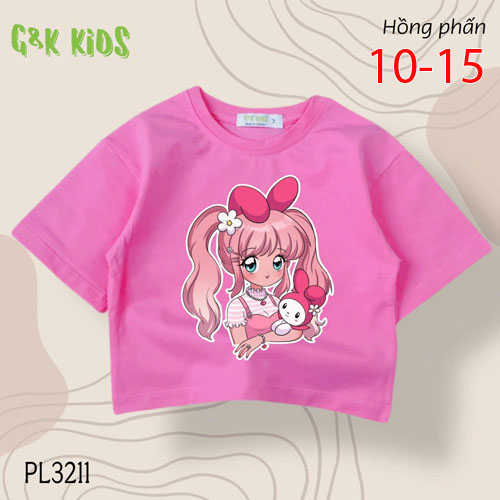 A488047 - Áo bé gái phom lững thun cotton 4c in cô bé ôm kuromi_Size 10-15