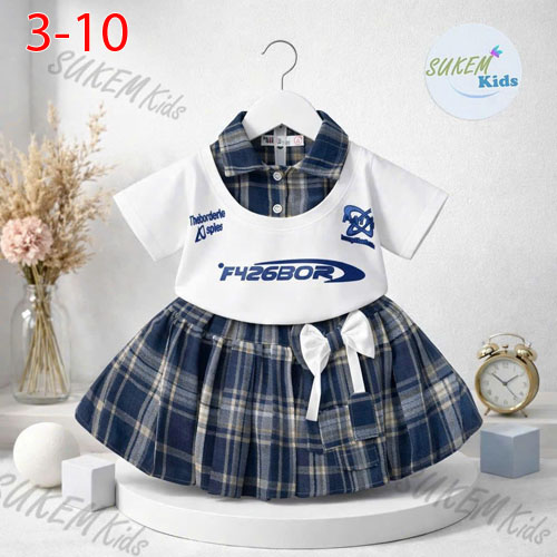 A488142 - Set váy áo may cổ trụ phối karo thêu đắp in chữ F426BOR_Size 3-10