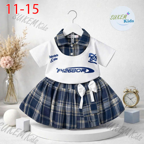 A488143 - Set váy áo may cổ trụ phối karo thêu đắp in chữ F426BOR_Size 11-15
