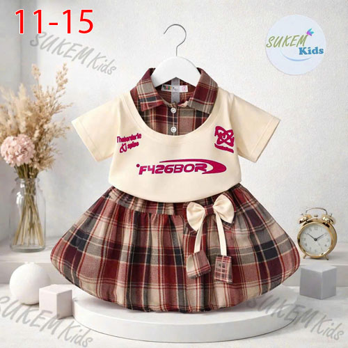 A488144 - Set váy áo may cổ trụ phối karo thêu đắp in chữ F426BOR_Size 11-15