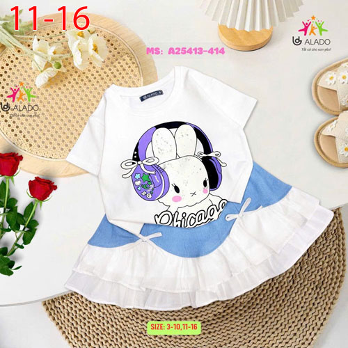 A488158 - Set váy jean phối ren 2 tầng in cô gái xinh chất thun cotton 4c_Size 11-16