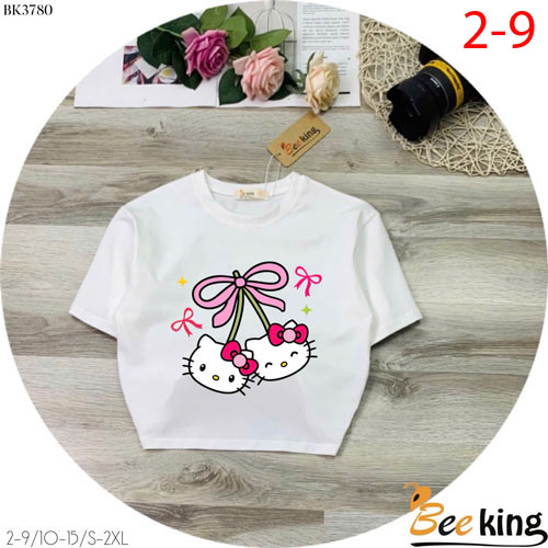 A488203 - Áo bé gái chất thun coton 4c in nơ 2 Kitty_Size 2-9