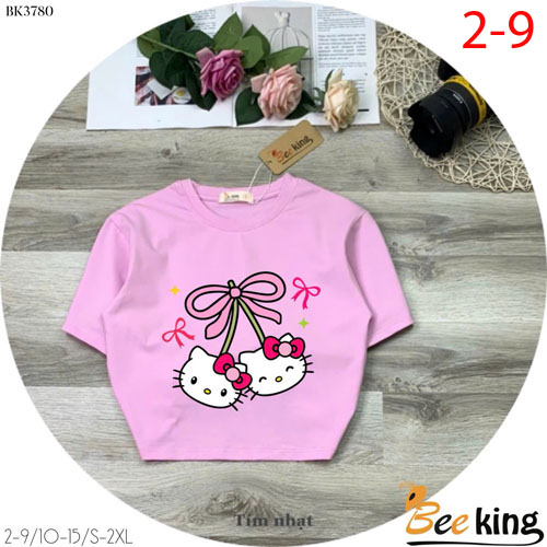 A488205 - Áo bé gái chất thun coton 4c in nơ 2 Kitty_Size 2-9