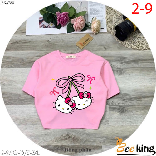 A488212 - Áo bé gái chất thun coton 4c in nơ 2 Kitty_Size 2-9