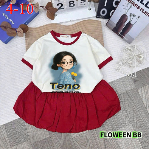 A488272 - Set bé gái chất thun cotton 4c in cô bé TENO chân váy bí kèm chip trong_Size 4-10