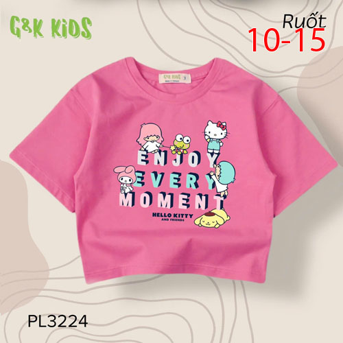 A488327 - Áo bé gái phom lững chất thun coton 4c in Kitty Melody những người bạn_Size 10-15