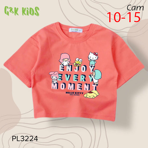 A488329 - Áo bé gái phom lững chất thun coton 4c in Kitty Melody những người bạn_Size 10-15