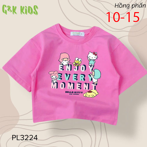 A488338 - Áo bé gái phom lững chất thun coton 4c in Kitty Melody những người bạn_Size 10-15