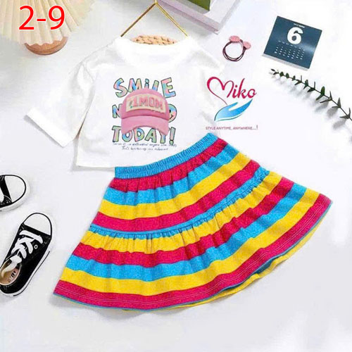 A488355 - Set váy kèm chip cực xinh cho bé áo thun in nón chữ chân váy màu cầu vồng_Size 2-9