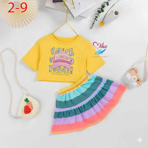 A488358 - Set váy kèm chip cực xinh cho bé áo thun in nón chữ chân váy màu cầu vồng_Size 2-9