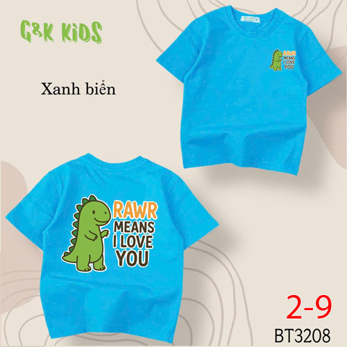 A488417 - Áo bé trai chất thun coton 4c in khủng long RAWR MEANS I LOVE YOU_Size 2-9