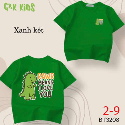 A488428 - Áo bé trai chất thun coton 4c in khủng long RAWR MEANS I LOVE YOU_Size 2-9