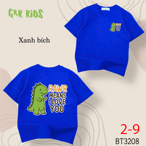 A488431 - Áo bé trai chất thun coton 4c in khủng long RAWR MEANS I LOVE YOU_Size 2-9