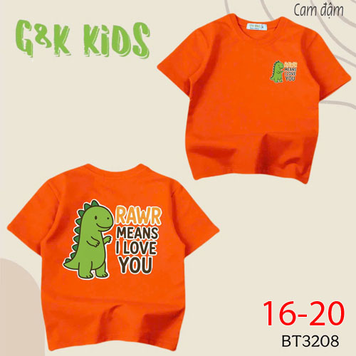 A488456 - Áo bé trai chất thun coton 4c in khủng long RAWR MEANS I LOVE YOU_Size 16-20