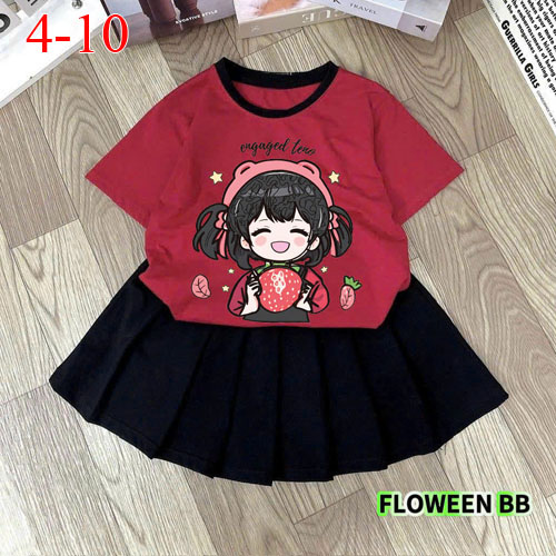 A488496 - Set bé gái chất thun cotton 4c in cô bé trái dâu chân váy xếp ly kèm chip trong_Size 4-10