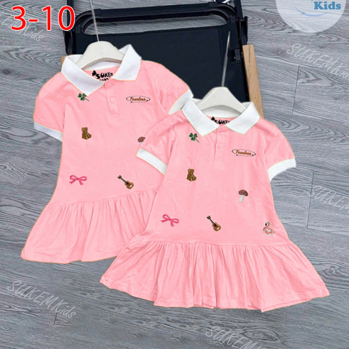 A488525 - Đầm thun cổ trụ may phối viền Thêu họa tiết cực xinh_Size 3-10