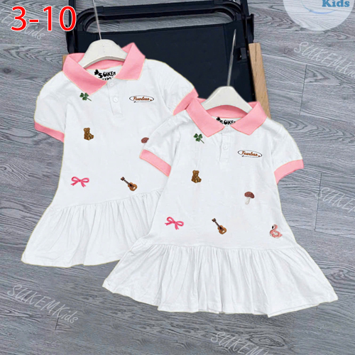 A488526 - Đầm thun cổ trụ may phối viền Thêu họa tiết cực xinh_Size 3-10