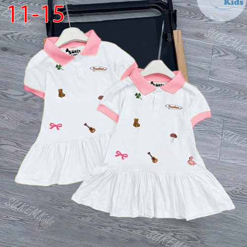 A488527 - Đầm thun cổ trụ may phối viền Thêu họa tiết cực xinh_Size 11-15