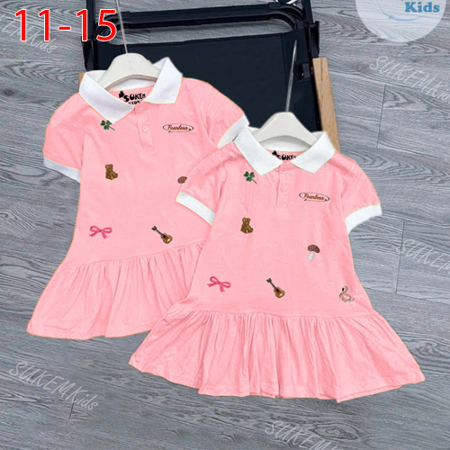 A488528 - Đầm thun cổ trụ may phối viền Thêu họa tiết cực xinh_Size 11-15