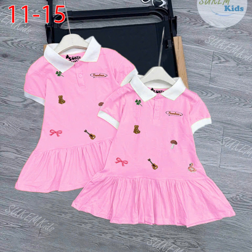 A488530 - Đầm thun cổ trụ may phối viền Thêu họa tiết cực xinh_Size 11-15