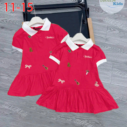 A488532 - Đầm thun cổ trụ may phối viền Thêu họa tiết cực xinh_Size 11-15