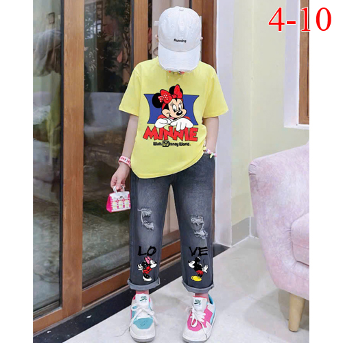 A488533 - Set jean siêu xinh cho bé diện áo chất Cotton 4c quần jean cotton mềm was rách_Size 4-10