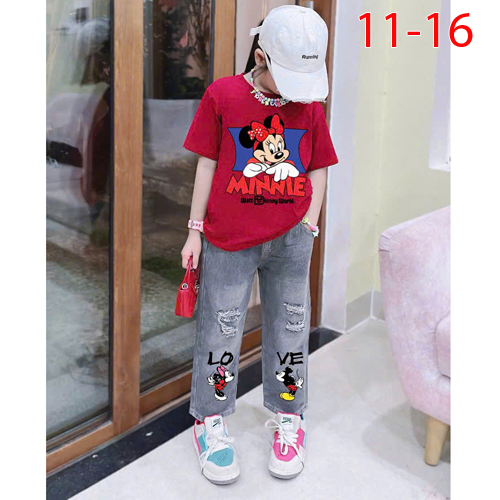 A488542 - Set jean siêu xinh cho bé diện áo chất Cotton 4c quần jean cotton mềm was rách_Size 11-16
