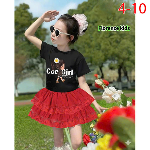 A488681 - Set váy cực xinh cho bé áo chất thun coton 4 chiều in Good Girl chân váy ren 2 tầng_Size 4