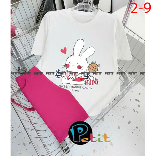 A488710 - Bộ bé gái thun cotton 4c áo tay ngắn mix cùng quần ôm ngố in thỏ tổng hợp_Size 2-9