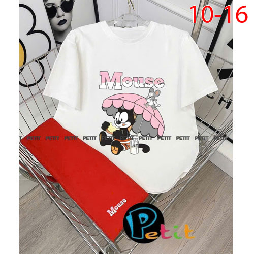 A488727 - Bộ bé gái thun cotton 4c áo tay ngắn mix cùng quần ôm ngố in thỏ tổng hợp_Size 10-16