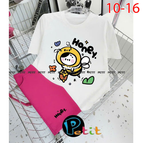 A488728 - Bộ bé gái thun cotton 4c áo tay ngắn mix cùng quần ôm ngố in thỏ tổng hợp_Size 10-16