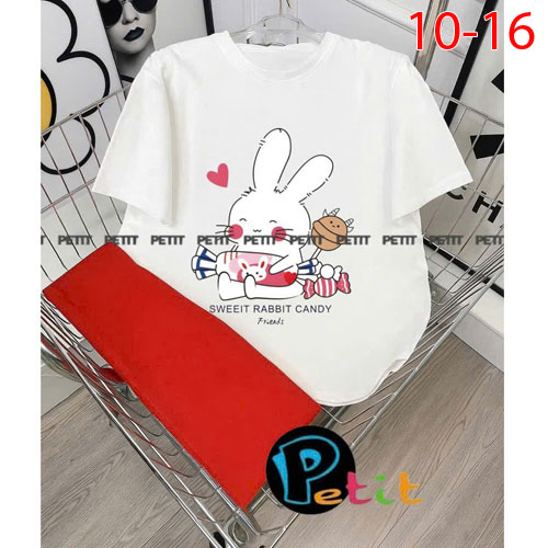 A488734 - Bộ bé gái thun cotton 4c áo tay ngắn mix cùng quần ôm ngố in thỏ tổng hợp_Size 10-16