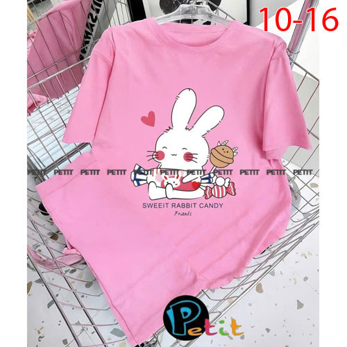 A488745 - Bộ bé gái thun cotton 4c áo tay ngắn mix cùng quần ôm ngố in thỏ tổng hợp_Size 10-16