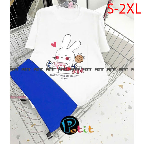 A488749 - Bộ bé gái thun cotton 4c áo tay ngắn mix cùng quần ôm ngố in thỏ tổng hợp_Size S-2XL