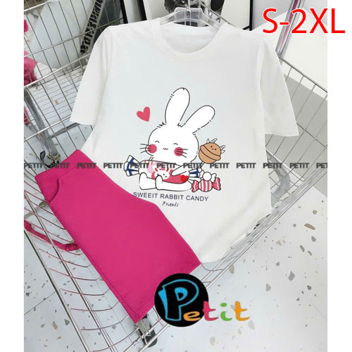 A488756 - Bộ bé gái thun cotton 4c áo tay ngắn mix cùng quần ôm ngố in thỏ tổng hợp_Size S-2XL