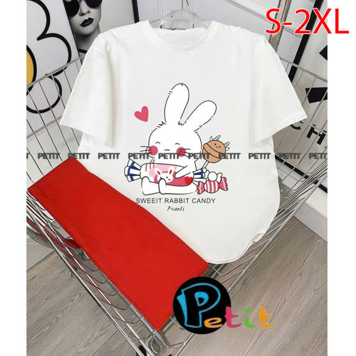 A488761 - Bộ bé gái thun cotton 4c áo tay ngắn mix cùng quần ôm ngố in thỏ tổng hợp_Size S-2XL