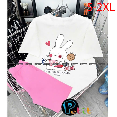 A488773 - Bộ bé gái thun cotton 4c áo tay ngắn mix cùng quần ôm ngố in thỏ tổng hợp_Size S-2XL