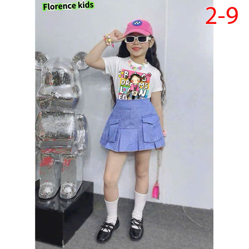 A488774 - Set bé gái áo thun cotton 4c in cô bé chân váy jean túi hộp kèm chip trong_Size 2-9