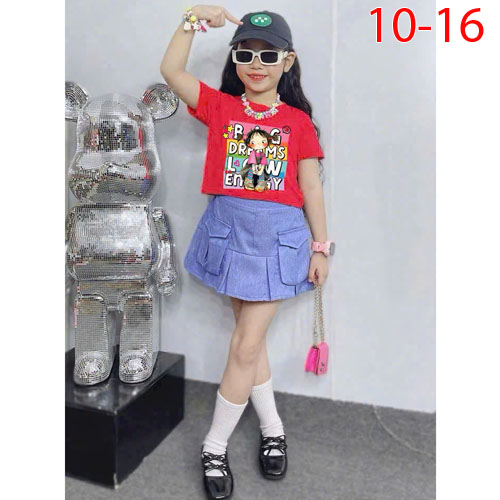 A488777 - Set bé gái áo thun cotton 4c in cô bé chân váy jean túi hộp kèm chip trong_Size 10-16