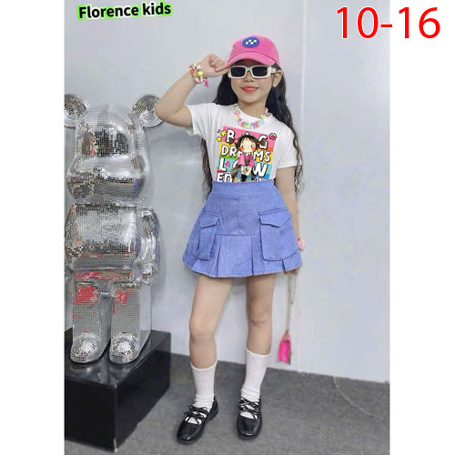 A488779 - Set bé gái áo thun cotton 4c in cô bé chân váy jean túi hộp kèm chip trong_Size 10-16