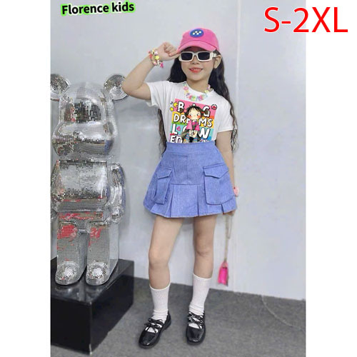 A488780 - Set bé gái áo thun cotton 4c in cô bé chân váy jean túi hộp kèm chip trong_Size S-2XL