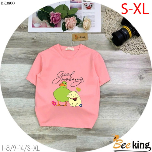 A488842 - Áo form lửng thun cotton in vịt và cún Good Morning_Size S-2XL