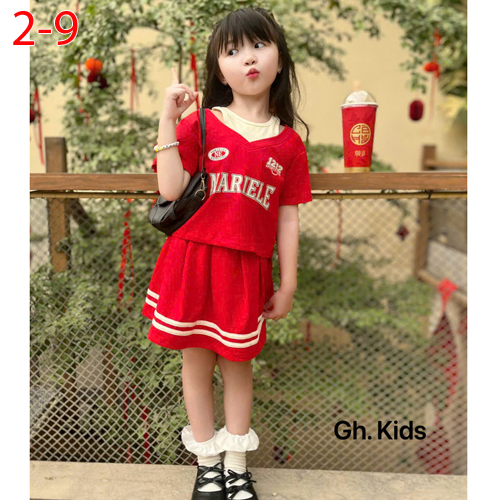 A488946 - Set váy bé gái chất liệu vải cotton áo in chữ chân váy chạy sọc_Size 2-9