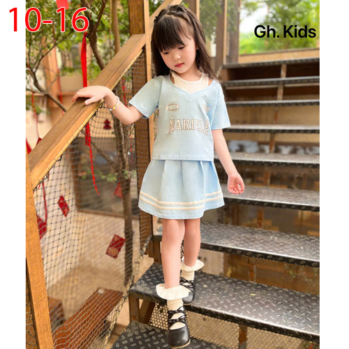 A488949 - Set váy bé gái chất liệu vải cotton áo in chữ chân váy chạy sọc_Size 10-16